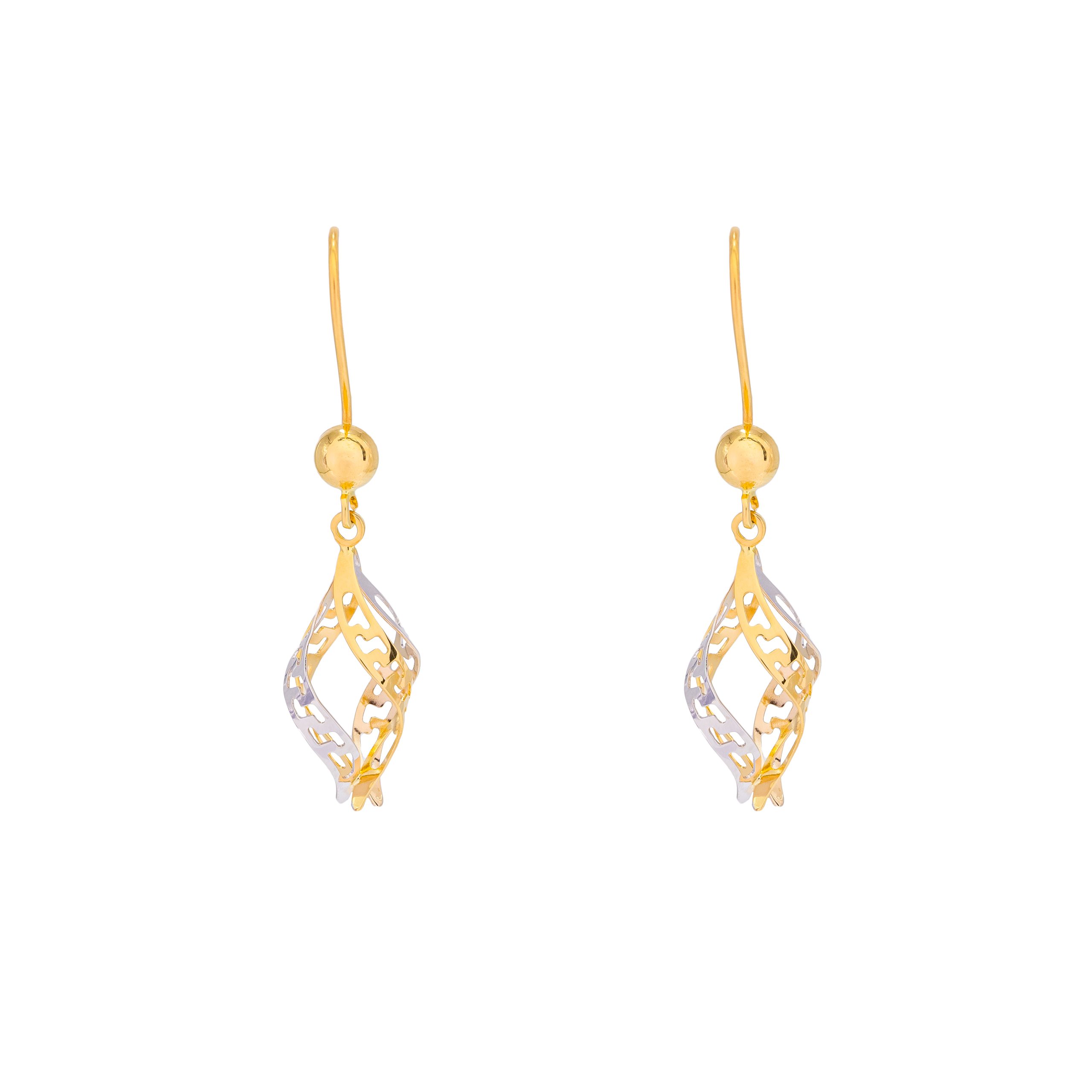 تمزج أقراط لافين من الذهب الأصفر عيار 18 بين الإبداع الفني المتقن والتصميم العصري بأسلوب فريد. تتميز هذه الأقراط المتدلية بتداخل أنيق بين أشكال الذهب الأصفر والأبيض الملتوية، مما يخلق تباينًا متناغمًا ينعكس مع كل حركة، ليمنحها بريقًا ساحرًا. يعكس تصميمها الانسيابي لمسة من الرقي والفخامة، ما يجعلها إكسسوارًا يجذب الأنظار في أي مناسبة.