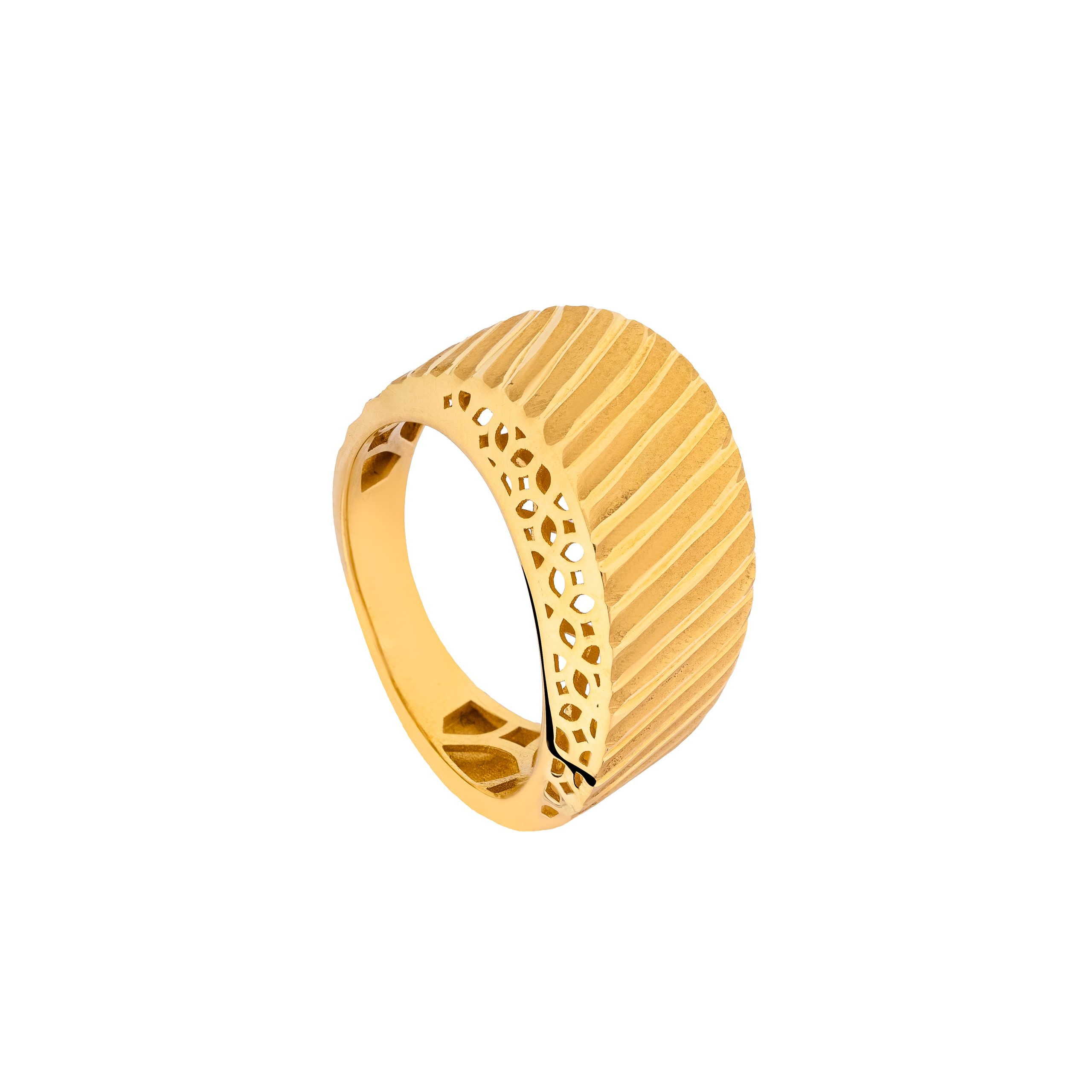 إن خاتم لافين من الذهب الأصفر عيار 18 قيراطًا ليس مجرد قطعة مجوهرات بل هو رمز للذوق الرفيع والأناقة التي لا تشوبها شائبة. تُعد الزخرفة الرقيقة المزخرفة إشارة إلى التقنيات التقليدية، بينما تضفي الأنماط الهندسية الجريئة لمسة معاصرة. هذا الدمج بين سحر العالم القديم والذوق العصري يجعل الخاتم تحفة فنية حقيقية.