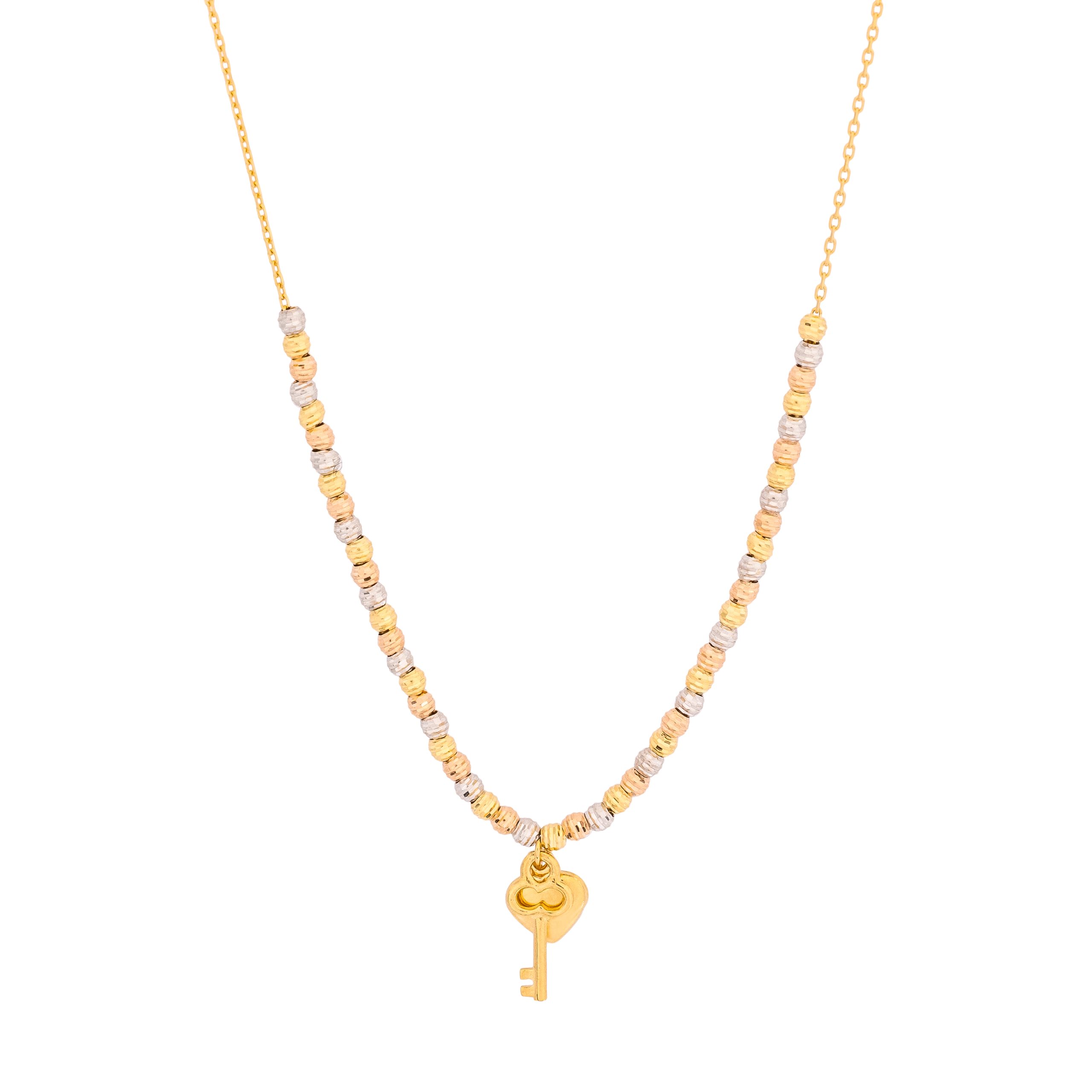 سلسال لافين من الذهب الأصفر عيار 18 قيراط، قطعة تجمع بسلاسة بين الأناقة الخالدة والسحر العصري. صُممت هذه القلادة بدقة متناهية لتجمع بين بريق الذهب الأصفر عيار 18 قيراطًا الغني مع لمسات من الذهب الأبيض والذهب الوردي. القطعة المركزية عبارة عن مفتاح رقيق وقلادة على شكل قلب، كل عنصر مصمم بشكل معقد ليرمز إلى التوازن بين القوة والحنان. إن ارتداء سلسال لافين هو تعبير عن الذوق الرفيع الذي يضفي لمسة من الرومانسية على إطلالاتك اليومية بفضل بريقه الرقيق ولمساته الرومانسية. سواءً كنتِ تحضرين حفلًا مسائيًا أو ببساطة تضيفين لمسة من الرقي إلى ملابسكِ اليومية، فإن هذا العقد يعدكِ بأن يكون لمسة عزيزة تتناسب مع رغبتكِ في الجمال والرقة.
