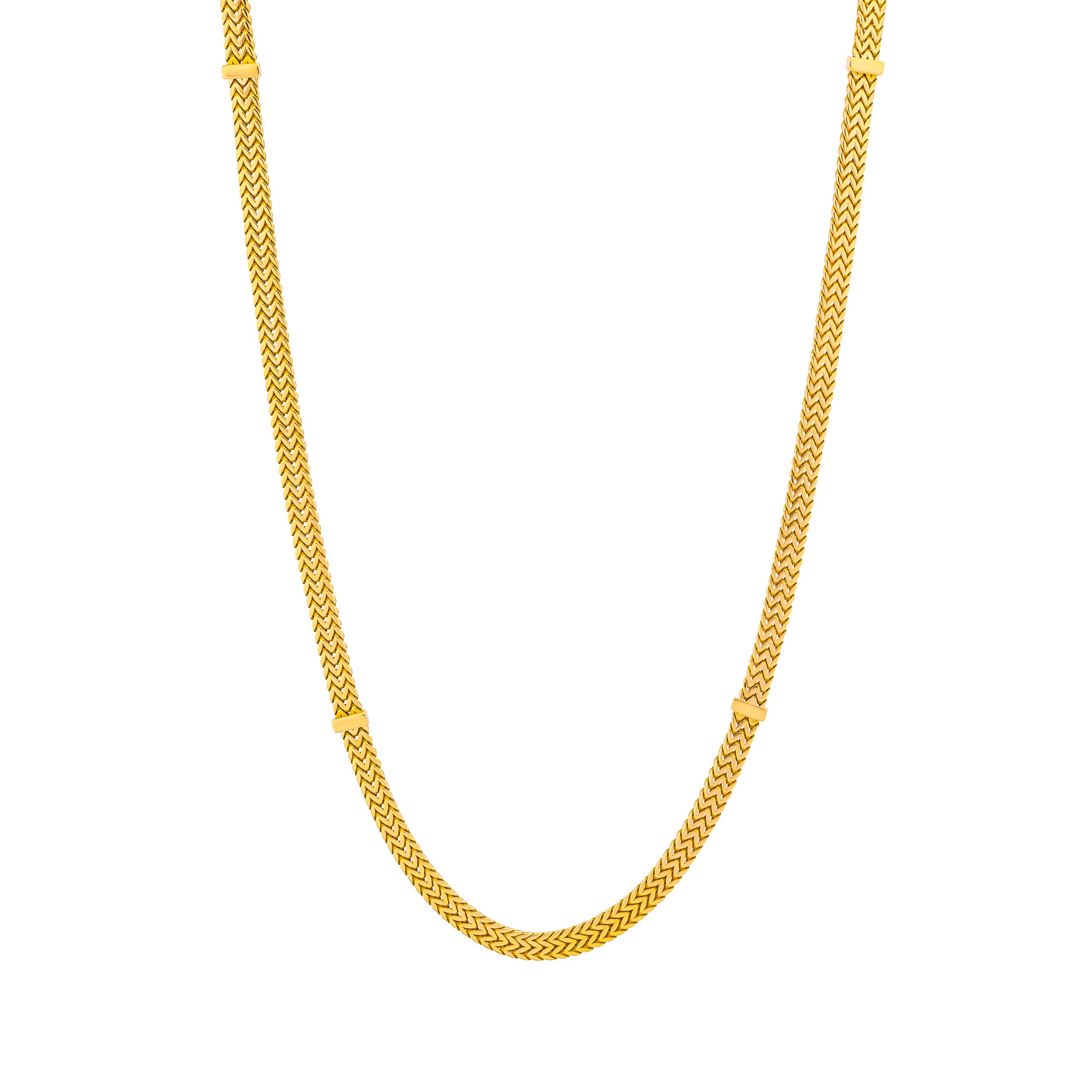 تمتاز سلسلة باتيرا عيار 18 قيراطًا بدقة الصنع والاهتمام بأدق التفاصيل، مما يضمن بقاءها على مر الزمن. الذهب المستخدم في تصنيعها من أعلى درجات النقاء، مما يضمن الحفاظ على لمعانها وبريقها لسنوات طويلة. تصميمها الكلاسيكي يعكس الجاذبية الخالدة التي تمزج بين البساطة والأناقة.