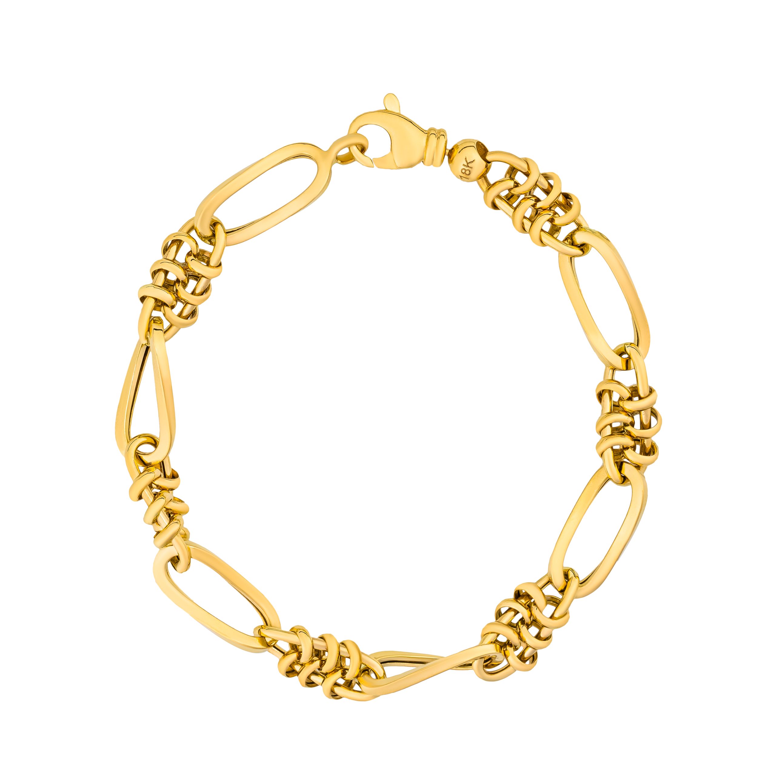 صُنع هذا السوار المصنوع من الذهب الأصفر الخالص عيار 18 قيراطاً من الذهب الأصفر الخالص، ويتميز هذا السوار البيزنطي ذو الوصلات البيضاوية بنمط معقد يوازن بين الجرأة والرقي. تخلق الحلقات المتشابكة بشكل مثالي ملمسًا انسيابيًا وفاخرًا، مما يجعله قطعة مميزة لا تخطئها العين. سواء تم ارتداؤه بمفرده أو مع مجوهرات أخرى، يقدم السوار إكسسوارًا راقيًا ينتقل بسلاسة من الأناقة غير الرسمية إلى الأناقة الرسمية.
