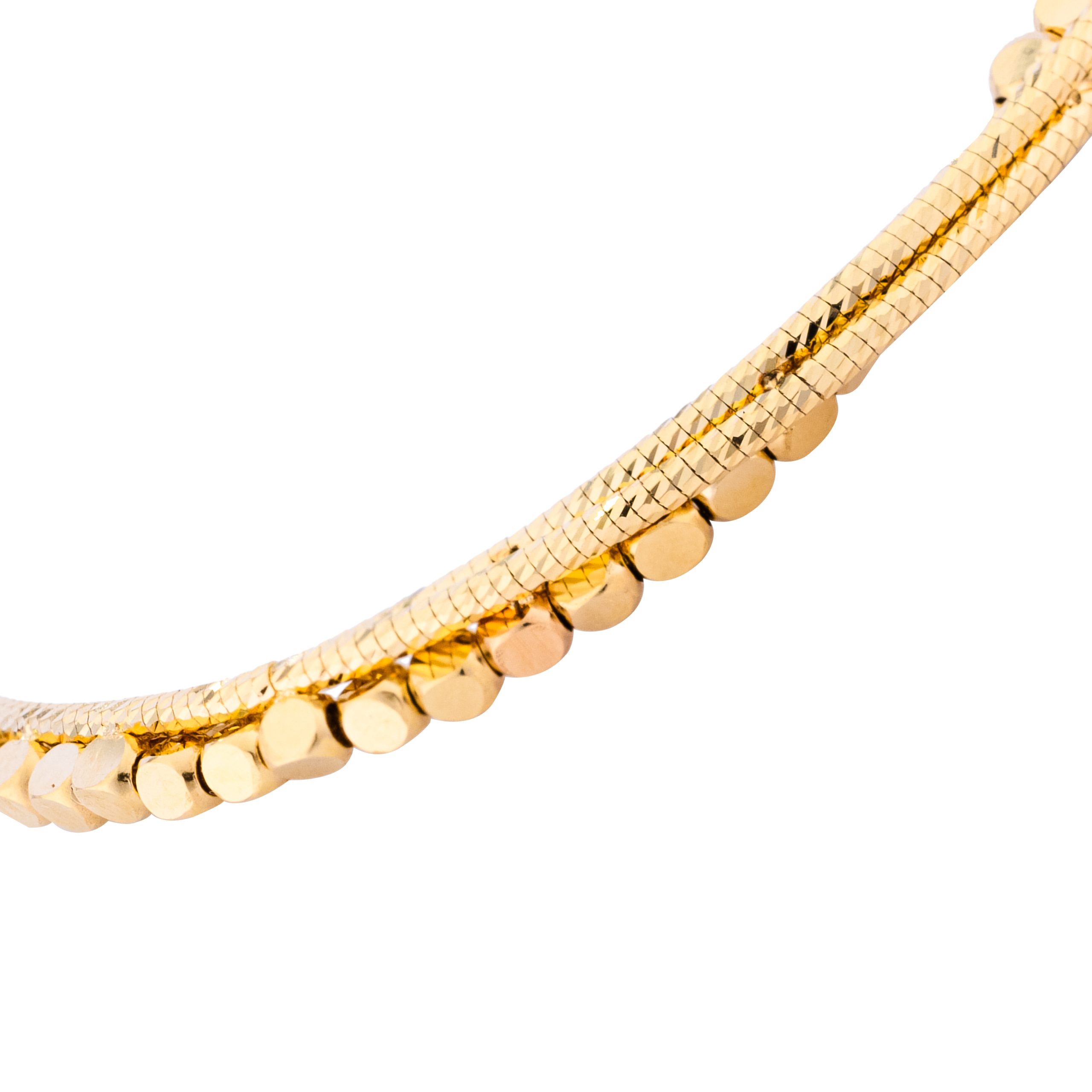 سوار لافين من الذهب الأصفر عيار 18 قيراطًا يجمع بين الأناقة الخالدة والتصميم المعاصر. تم تصنيعه ببراعة باستخدام خيوط من الذهب الأصفر عيار 18 قيراطًا متشابكة، ويتميز بلمسة نهائية منقوشة تضيف عمقًا لجاذبيته العصرية. يعزز التباين الطفيف مع لمسات من الذهب الأبيض من رقيه، مما يخلق تناغمًا بصريًا يتمتع بسحر لا يبذل جهدًا. سواء تم ارتداؤه كقطعة بارزة بمفرده أو تم تنسيقه مع ملحقات أخرى، فإن هذا السوار ينتقل بسلاسة من النهار إلى الليل، مما يضيف لمسة من الأناقة الرفيعة إلى أي مظهر.