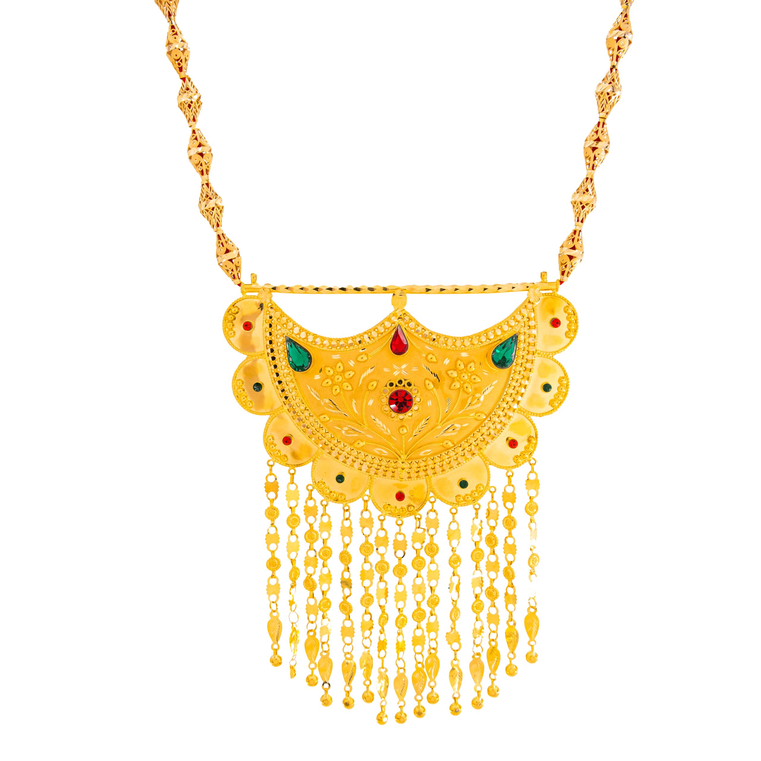 مصنوع من الذهب الأصفر اللامع عيار 21 قيراط، يُجسد شناف ميسورة براعة الحرفية الإماراتية وأصالة التراث. يتميز هذا العقد التقليدي بتصميم خالد يجمع بسلاسة بين الأناقة الفريدة والدقة المتناهية في التصنيع، ليحافظ على القيمة الثقافية العريقة للـ شناف في التراث الإماراتي. كل تفصيلة فيه تُنفَّذ يدويًا بعناية فائقة على يد أمهر الحرفيين، مستخدمين أساليب تراثية تضمن التوازن بين الجمال المتقن والمتانة الاستثنائية.