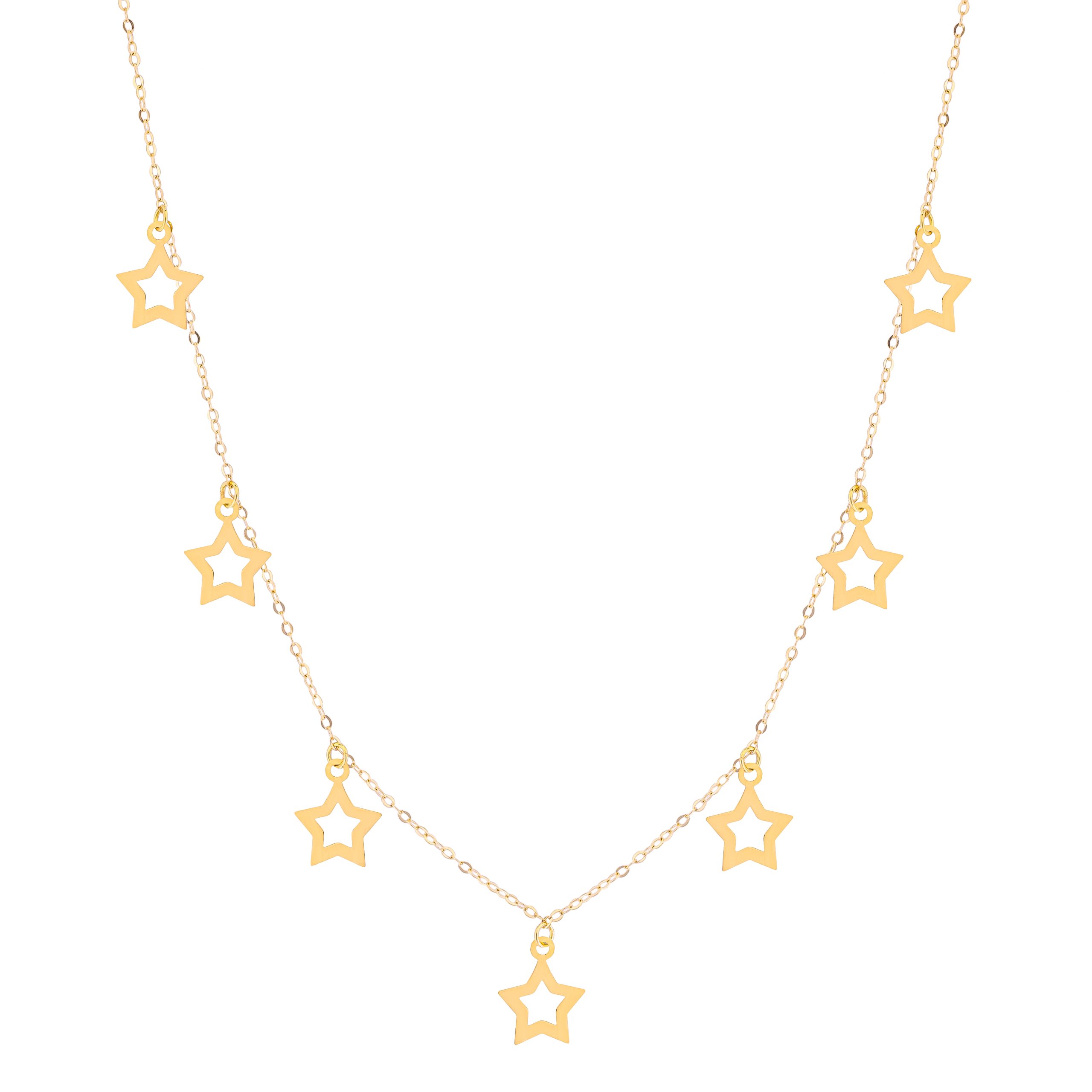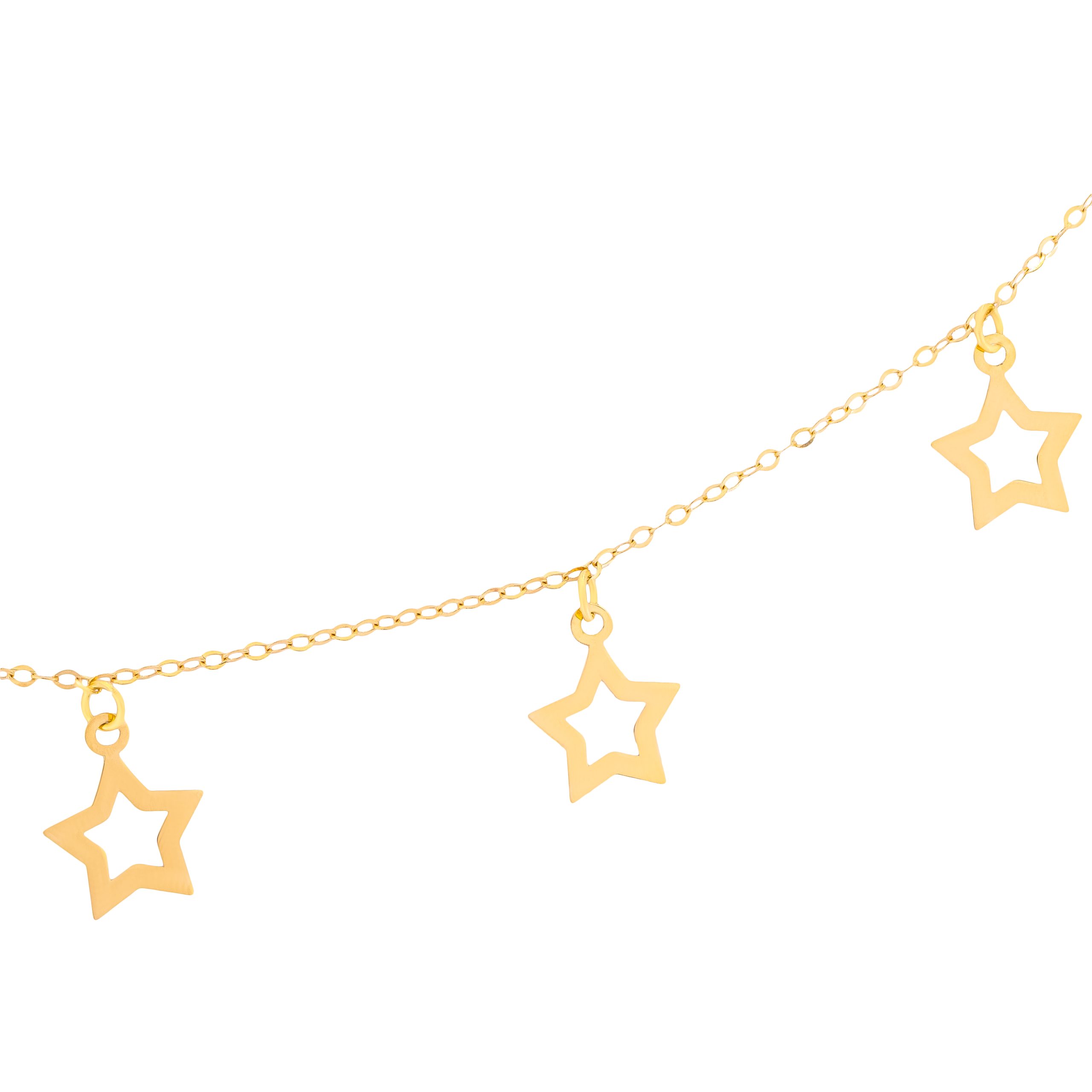 صُنعت قلادة لافين من الذهب الأصفر عيار 18 قيراطًا المتلألئ، وتتميز بحلي رقيقة على شكل نجمة تتألق بلمعانها البسيط. صُممت كل حلية بدقة متناهية لتلتقط الضوء وتعكسه، مما يخلق بريقاً ناعماً يرافق كل حركة. توازن السلسلة بين الأناقة وتعدد الاستخدامات دون عناء، حيث يضمن ملمسها الخفيف الوزن الراحة، بينما توفر اللمسات النجمية لمسة جمالية مرحة وراقية في نفس الوقت تتكامل مع ملابس النهار والمساء. هذه القلادة مثالية للواتي يقدرن الأناقة العصرية بلمسة سماوية، فهي مثالية لمن يقدرن الرقي العصري بلمسة سماوية، حيث تحول أي إطلالة إلى مظهر من الفخامة الرقيقة.