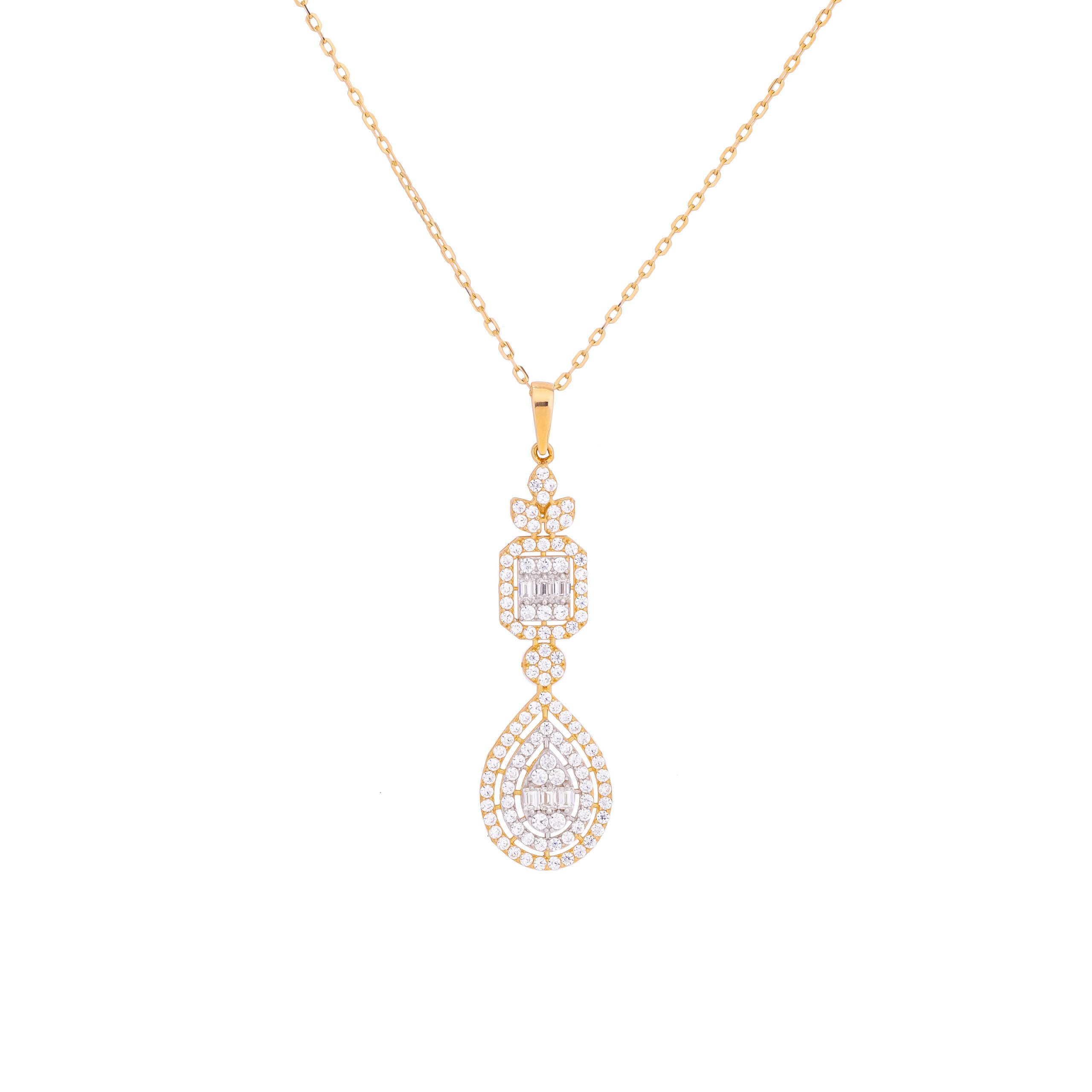 Crafted from 18K rose gold and adorned with shimmering zircon accents, the Lavin 18K Rose Gold Necklace is a refined display of artisanal craftsmanship. The delicate pendant, shaped like a drop of water, captures the essence of fluidity and grace, making it a sophisticated piece for any occasion. The soft, blush-toned gold complements the gleaming zircon, catching the light in a way that adds understated brilliance to your look. Perfectly balanced between delicate charm and timeless appeal, this necklace enhances both everyday outfits and evening ensembles with effortless allure. Its intricate design ensures versatility, allowing it to pair seamlessly with a variety of jewelry pieces. Whether worn as a standalone statement or layered with other delicate necklaces, the Lavin 18K Rose Gold Necklace exudes elegance and refinement. The precision of its craftsmanship and the harmonious blend of materials make it not just a piece of jewelry, but a testament to enduring beauty and sophistication.