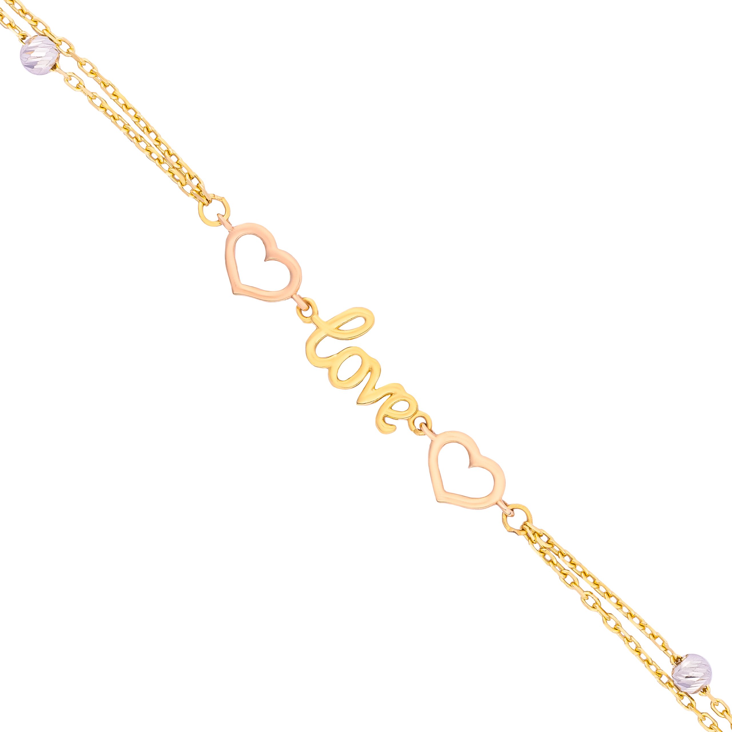 The Lavin 18K Yellow Gold Bracelet embodies sophistication in every detail. Crafted from pure 18K yellow gold, the dual fine chain design is enhanced with delicate accents of white and rose gold, creating a harmonious blend of warm and cool tones. At its center, the word “love” is elegantly inscribed, adding a meaningful touch to its timeless design. Whether paired with formal attire or worn as an everyday statement, this bracelet exudes understated luxury and grace, making it a cherished piece for any occasion.