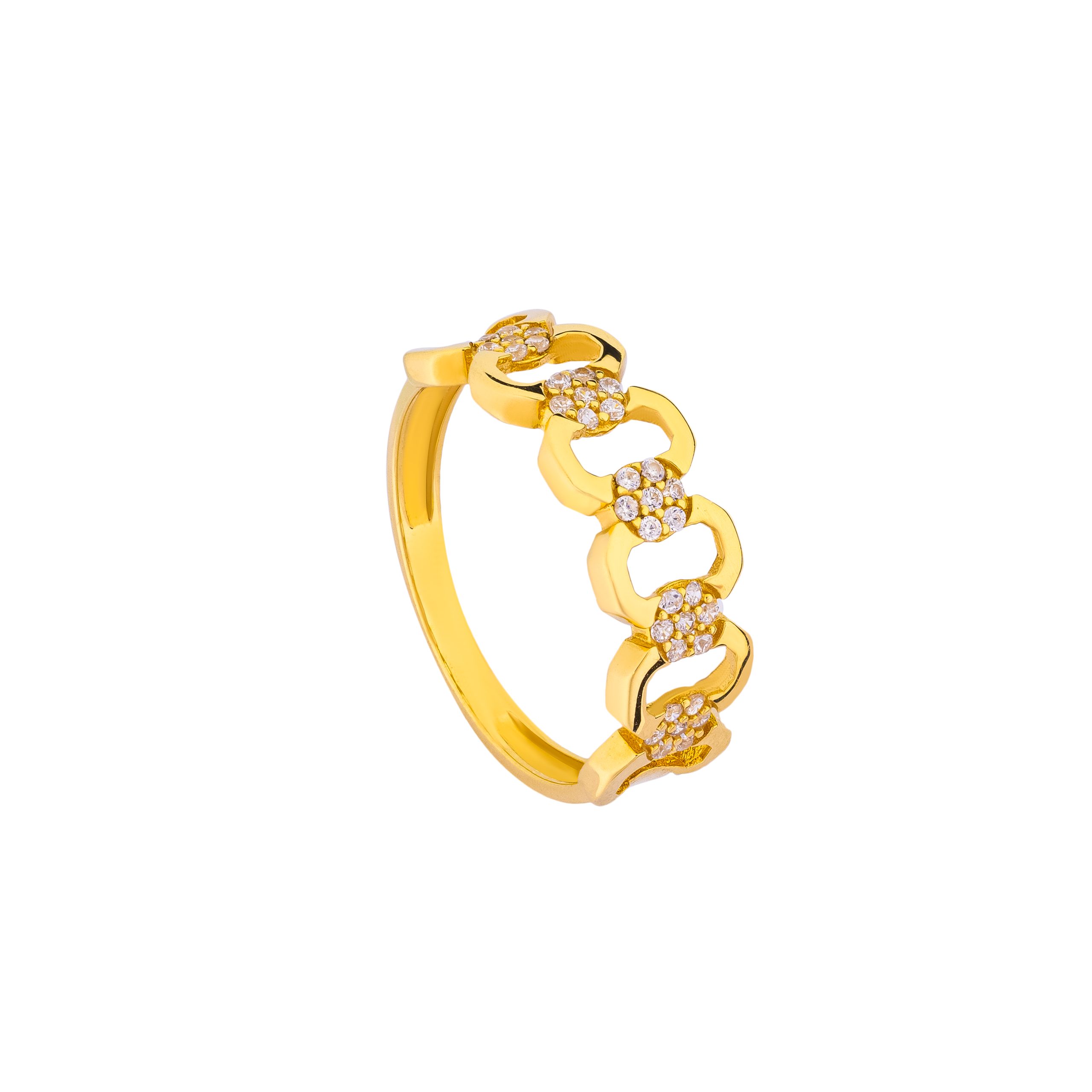 The Lavin 18K Yellow Gold Ring embodies the perfect harmony of contemporary design and timeless sophistication. Expertly crafted from luminous 18K yellow gold, this triple stack ring offers a distinctive silhouette that captivates from every angle. The addition of a sleek white gold accent introduces a subtle contrast, while its surface sparkles with meticulously set zircon stones, radiating an understated brilliance. Designed with both elegance and versatility in mind, this ring enhances every style whether as a refined everyday piece or a statement for special occasions. Perfectly balanced between bold and graceful, the Lavin 18K Yellow Gold Ring is a true celebration of modern craftsmanship.