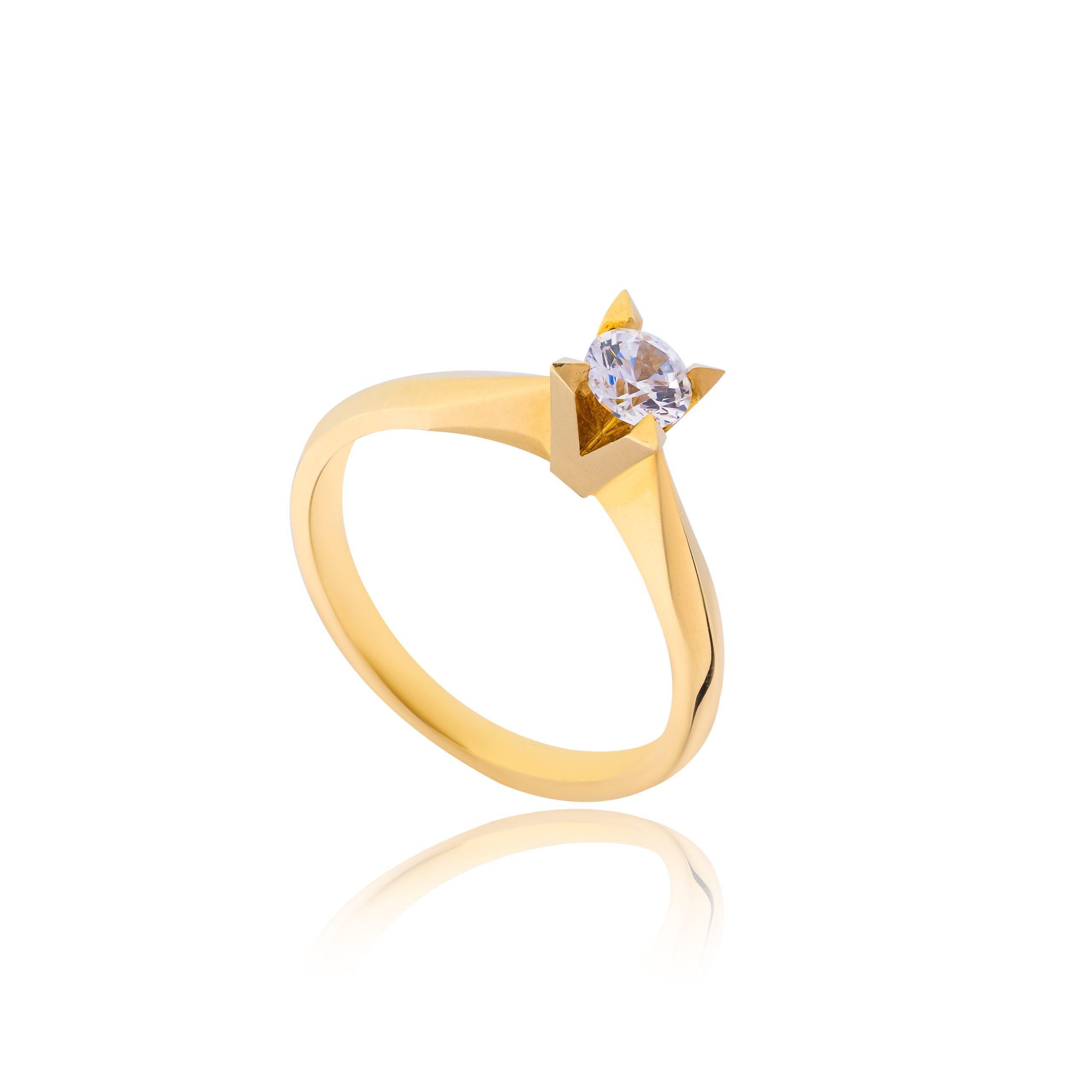 The Lavin 18K Yellow Gold Ring is a timeless solitaire engagement ring, meticulously crafted in warm, radiant 18K yellow gold. At its heart lies a brilliant-cut zircon stone, chosen for its remarkable clarity and sparkle, perfectly set to catch the light from every angle. The classic solitaire design exudes understated elegance, making it an enduring symbol of commitment and style. Whether paired with an evening gown or worn as everyday jewelry, this exquisite ring provides a seamless blend of sophistication and modernity, beautifully accentuating the wearer’s individuality.