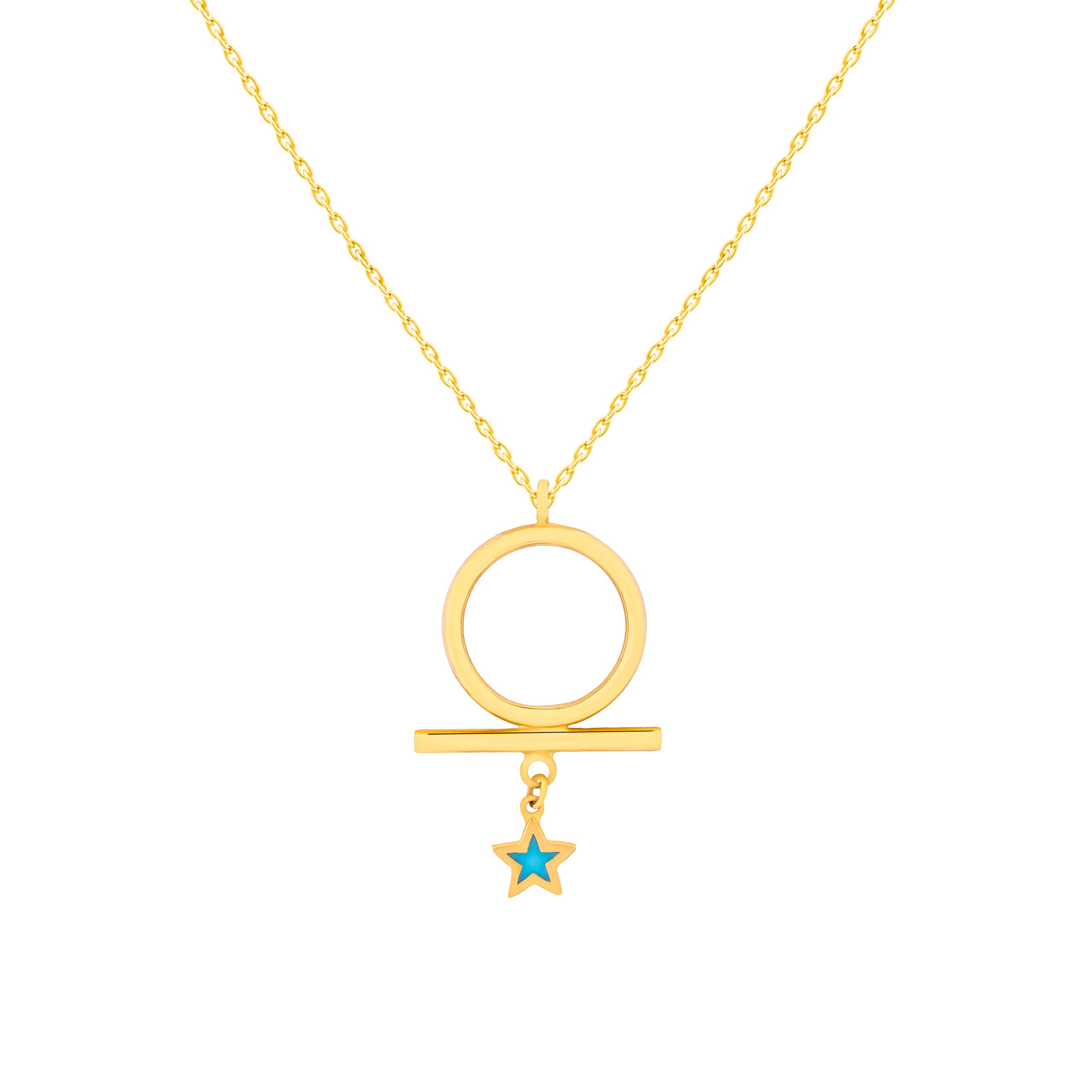 Crafted from exquisite 18k yellow gold, the Lavin Ankh Key Necklace is a tribute to timeless design and meaningful symbolism. The gleaming Egyptian key of life pendant takes center stage, representing life and eternity, while a circular gold charm adds a refined balance. Below, a delicate blue star charm shimmers like a bright celestial accent, offering a harmonious blend of elegance and individuality. This intricately designed necklace drapes beautifully, making it a statement piece that seamlessly enhances both modern and classic styles.