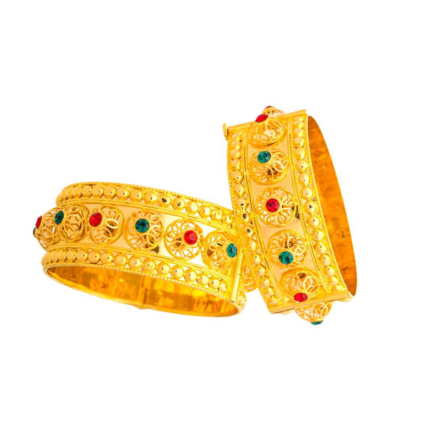 In a world where jewelry styles often shift with the seasons, the Maysoora 21K Yellow Gold Bangle maintains its allure through an elegant blend of tradition and modernity. Every curve and line of the bangle speaks of a rich heritage, where skilled artisans dedicate hours to achieving a flawless execution. Its intricate detailing and luminous glow are not merely adornments but expressions of cultural reverence and personal identity. This bangle stands as more than an accessory; it is a storytelling device that narrates tales of sophistication, artistry, and an unspoken promise of excellence. Delight in the graceful harmony of gold and zircon with each wear, and let Maysoora be the jewel that adorns your storied past and shining future.