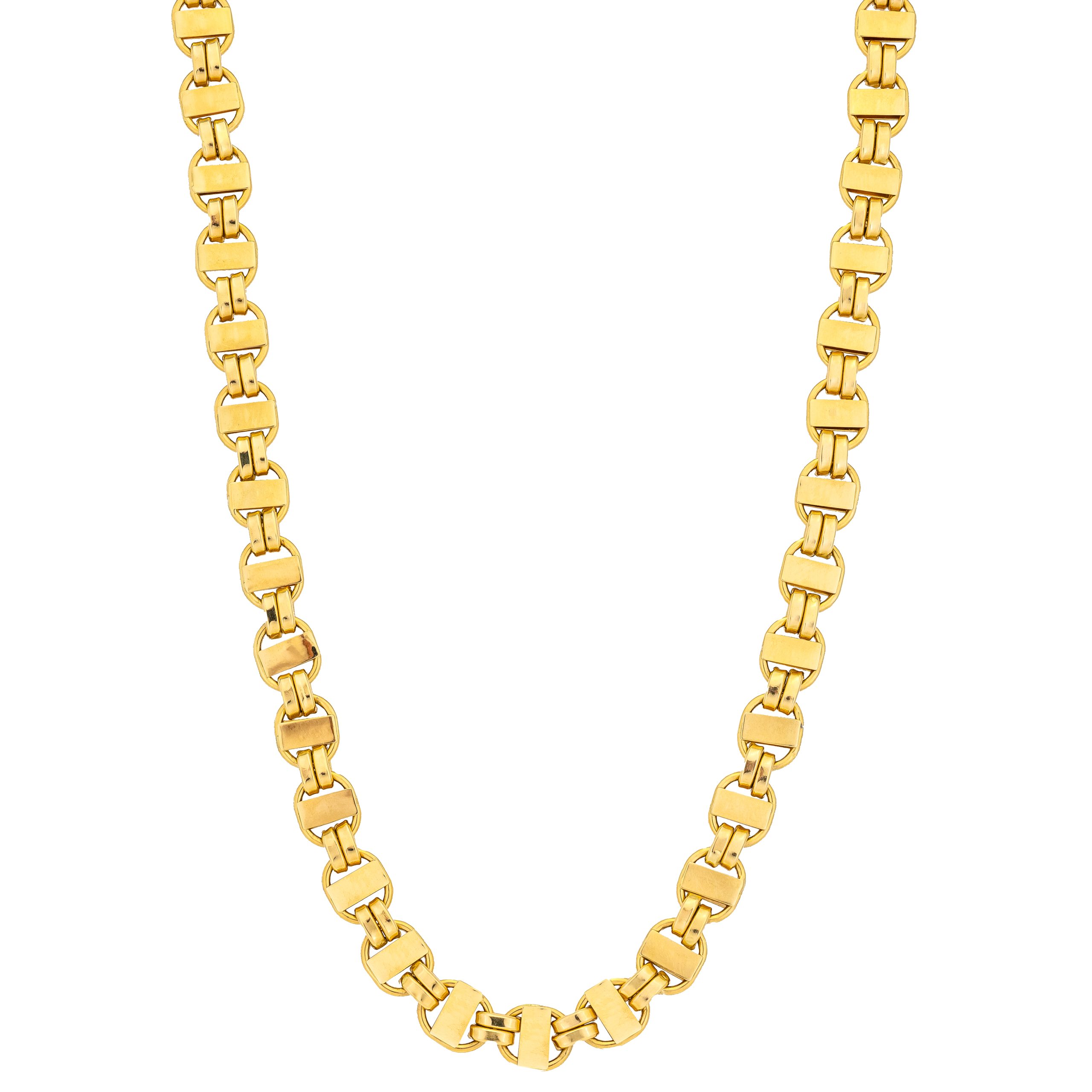 This 18K yellow gold chain is a timeless and classic accessory that adds a touch of luxury to any outfit. With its intricate linked design and flawless shine, it is the perfect choice for those who appreciate finer details and quality craftsmanship. The durability of 18K gold ensures that this chain can be worn for years to come, making it a worthy investment for any stylish man.