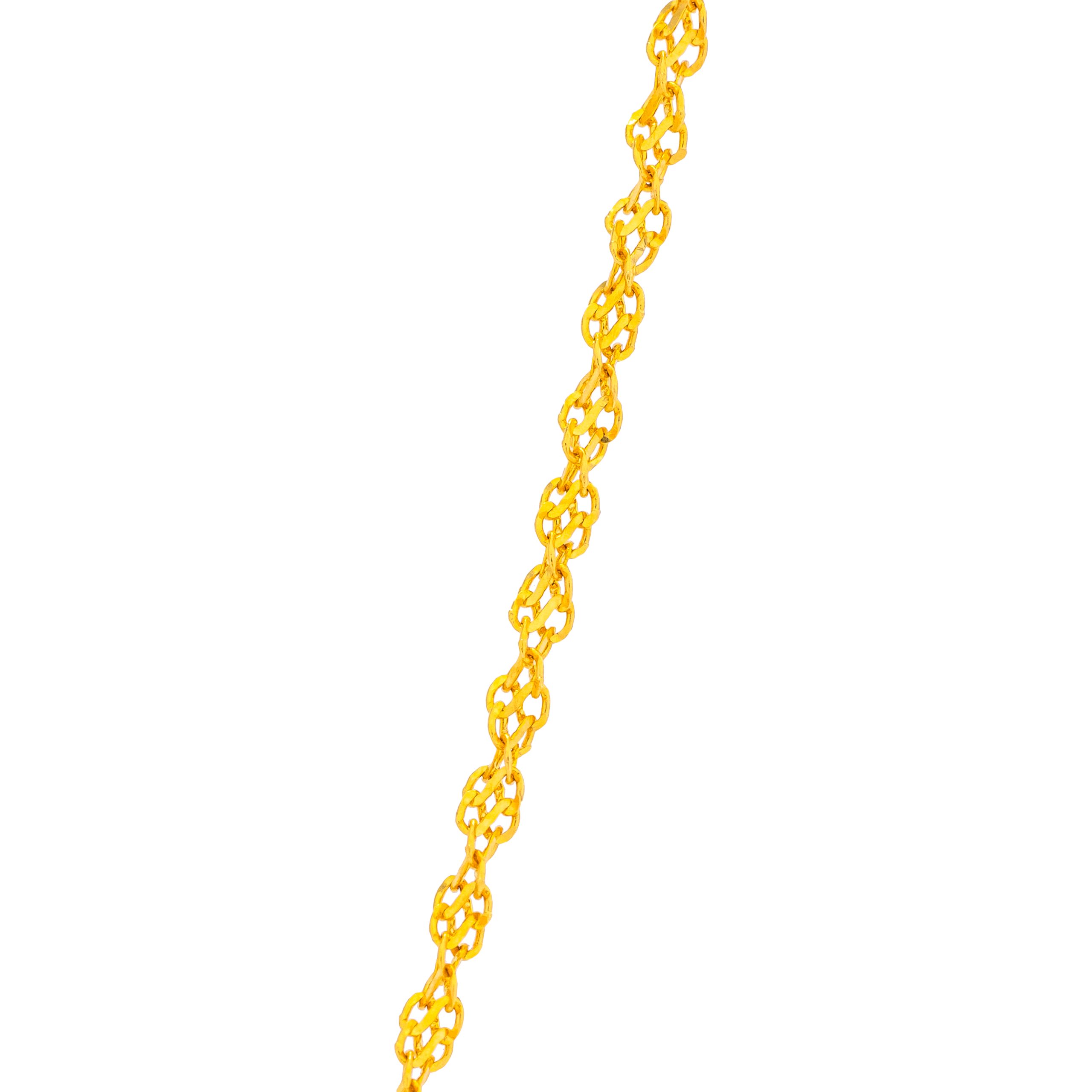 Designed to withstand the test of time, the Patira 21K Yellow Gold Chain is expertly crafted by skilled artisans using only the finest materials. Each link is carefully crafted and meticulously inspected to ensure unparalleled quality and durability. It’s an investment piece that will be treasured for years to come, passed down as a cherished heirloom for generations. When you wear the Patira 21K Yellow Gold Chain, you carry with you a legacy of timeless beauty and impeccable craftsmanship.