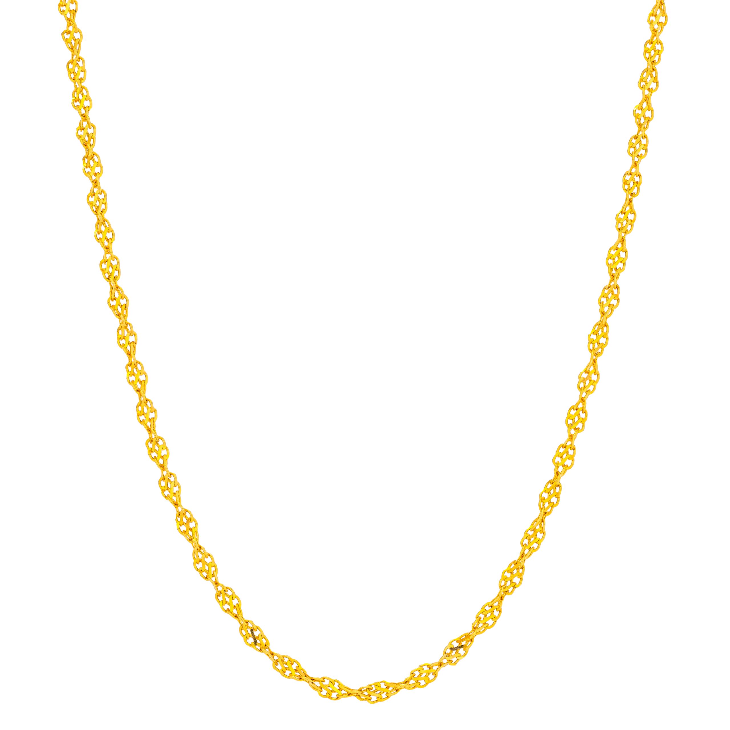 Crafted with precision, the Patira 21K Yellow Gold Chain is a testament to timeless elegance and sophistication. This exquisite chain boasts a luxurious design, seamlessly combining classic craftsmanship with a modern flair to enhance any attire. The rich luster of 21K gold offers a captivating shine that stands out, making it an irresistible piece for those who appreciate subtle yet striking adornments. Whether layered for a chic effect or worn solo as a statement piece, this chain exudes a sense of refined style. Experience the effortless way this piece elevates your look, adding an undeniable touch of class and confidence to your everyday ensemble. The Patira 21K Yellow Gold Chain is more than just a piece of jewelry; it’s a symbol of impeccable taste and discerning style. The intricate detailing and flawless finish make this chain a coveted accessory for any fashion-forward individual. Its versatile design makes it suitable for any occasion, whether it be a formal event or a casual outing with friends. This chain is the perfect addition to your collection, effortlessly elevating your outfit from ordinary to extraordinary.